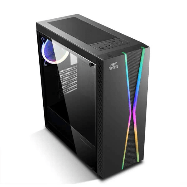 Ant Esports ICE-200TG Mid Tower Gaming Cabinet RGB Front Panel with Transparent Tempered Glass Side Panel, Black Glossy Finish and Acrylic Front Panel. Next-generation Gaming cabinet with all the new features to compliment all gamer needs. The new stand out design from Ant Esports is meant for 21st-century gamers.