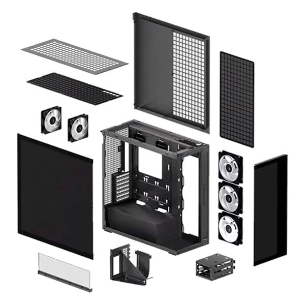 | Fan Support (Side) | 3 × 120 mm or 3 × 140 mm (included) |