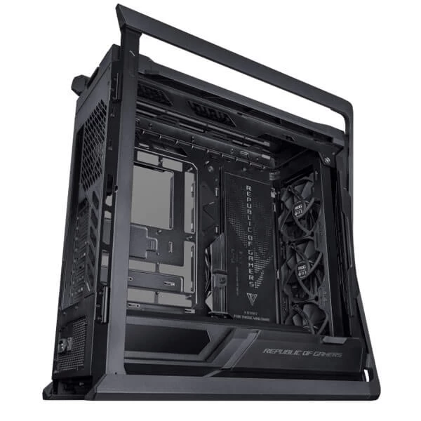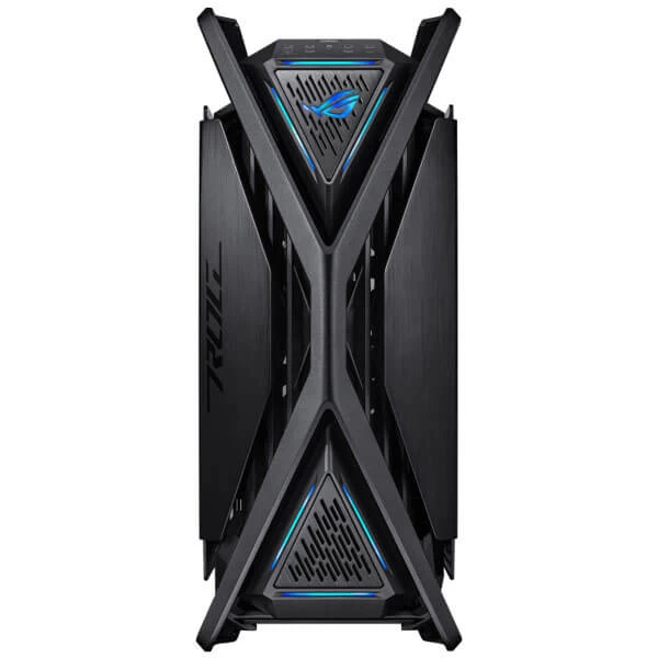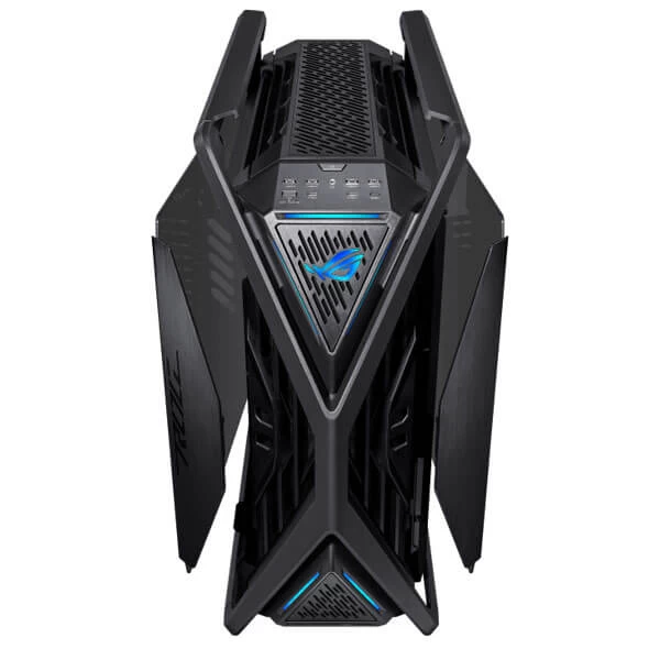 Asus ROG Hyperion GR701 BTF Edition E-ATX computer case features a sleek design with hidden motherboard connectors, support 420 mm dual radiator, metal GPU holder, and comes with four 140 mm fans and a built-in fan hub offer massive airflow.