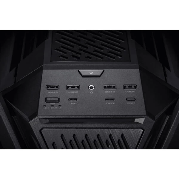 The front of any ROG chassis has to offer a host of connectors, and the ROG Hyperion BTF Edition adds to the tradition with two USB Type-C® connectors that can offer up to 20 Gbps of data transfer and up 60 watts of fast charging with a compatible motherboard.