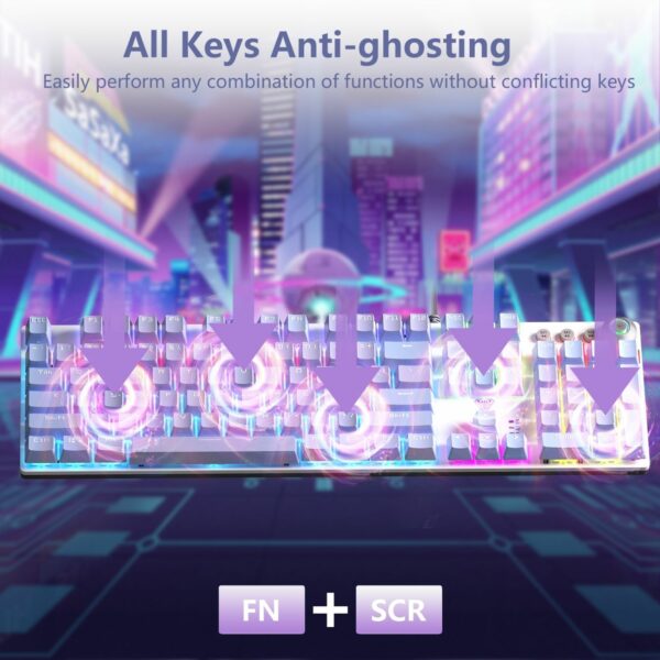 Anti-Ghosting & Rollover | Full 104-Key anti-ghosting; FN + PRTSCR = 6-Key Rollover, FN + SCRLK = N-Key Rollover |