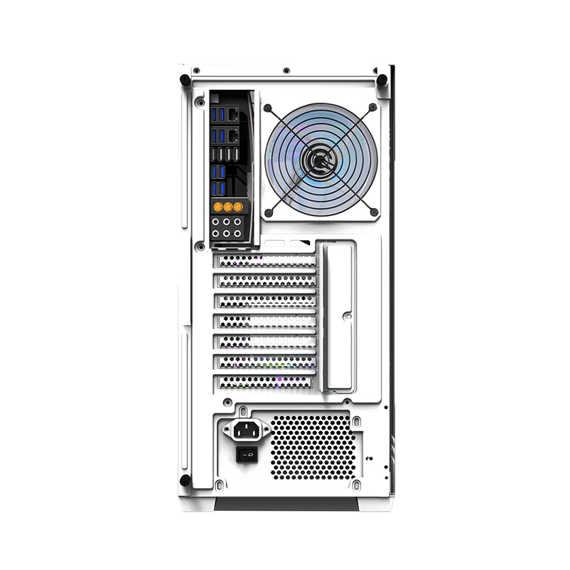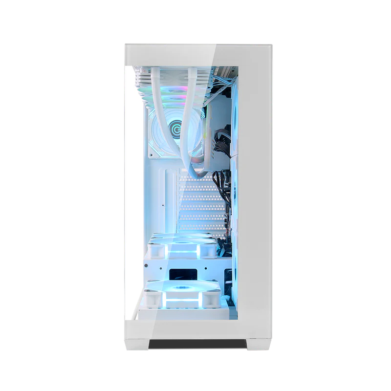 - Sleek Aesthetic: The elegant white finish with tempered glass panels allows you to showcase your internal components while providing a contemporary look.