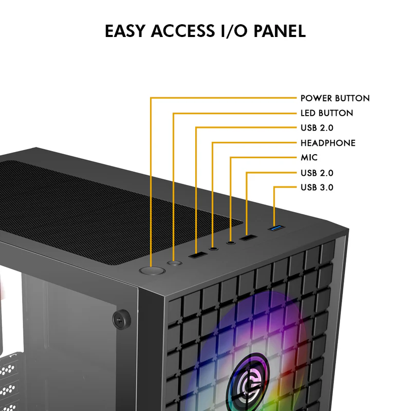 Take your gaming setup to the next level with the CIRCLE MINIATOR M2 ARGB, a compact Micro ATX gaming cabinet designed for gamers who want style, performance, and functionality in one.
