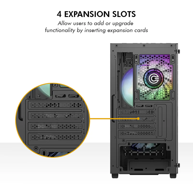 Flexible Storage & Expansion – With space for 2 × 3.5” HDDs and 2 × 2.5” SSDs, plus multiple expansion slots, it’s ready for any gaming upgrade.