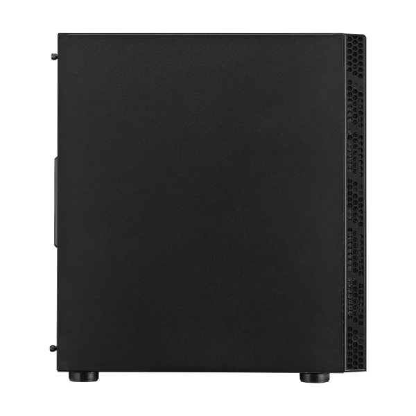 Large, mesh intakes span each side of the front panel to provide additional airflow to system.