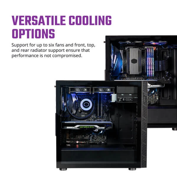 Support for up to six fans and front, top, and rear radiator support ensure that performance is not compromised.