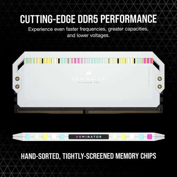 CORSAIR DOMINATOR PLATINUM RGB DDR5 Memory which is a dual kit memory channel and it is optimized for the latest Intel DDR5 motherboards. This Memory customer will get in white color RGB lighting effect.