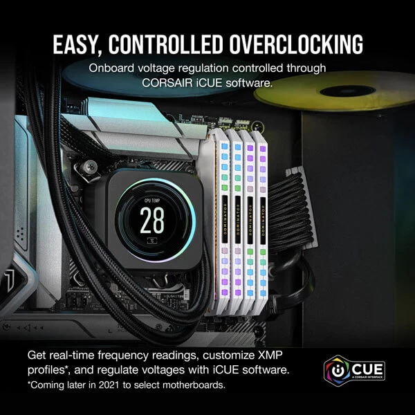 You have the power and the control. Built-in voltage regulation with iCUE software control makes for easier, finely-tuned output that provides more stable overclocking than ever.
