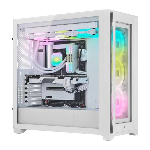 - Corsair ICUE 5000X A Captivating Start to a White PC Build: Four QL120 RGB PWM fans and an iCUE Lighting Node CORE RGB lighting controller, pre-installed in the multi-award-winning 5000X RGB case