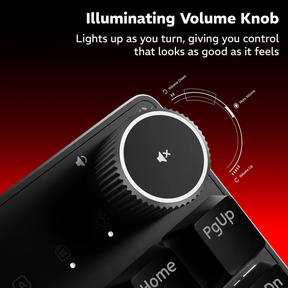 Take control in style with an illuminated volume knob that adds flair to every adjustment.