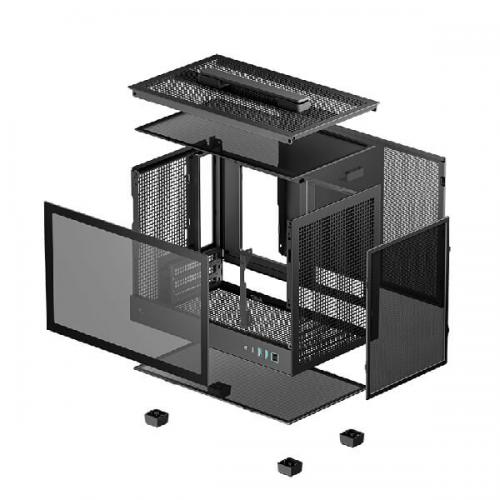 DeepCool CH160 Mini-ITX PC Case, High Airflow Mesh Panels, Full-Sized Air Cooler Support, Direct Insert GPU Capable, Flexible Drive and PSU Compatibility, Black