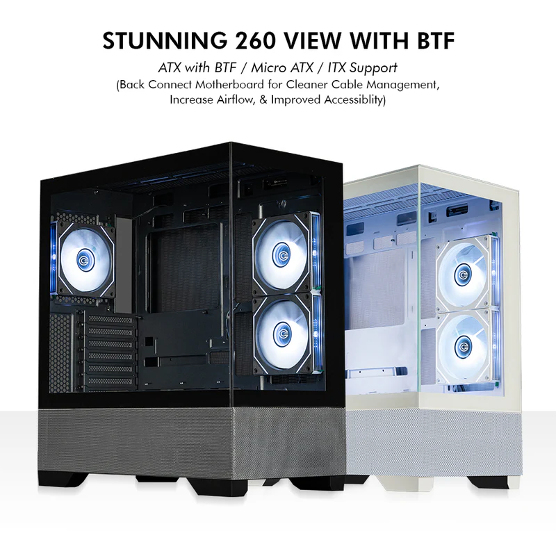 - Cable Management: Hidden PSU shroud and Velcro straps for a clean interior.