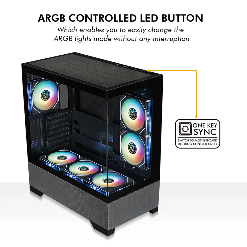 - ARGB Fans: Comes with pre-installed ARGB fans (often 4x 120mm) for vibrant, customizable lighting.