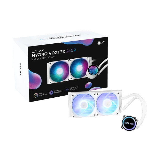 GALAX Hydro Vortex 240R Liquid Cooler comes with ARGB Lighting white color design, compatible with Intel LGA 1700 and AMD AM5 socket.