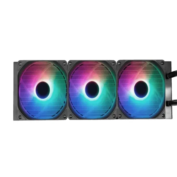Featuring an infinity mirror design with ARGB light effect, the all-in-one liquid CPU cooler Hydro Vortex 360R which is equipped with a 360mm aluminum radiator, powerful water pump and triple 120mm fans offers exceptional thermal performance and cooling efficiency to the core of your computer system while operating at low noise level.