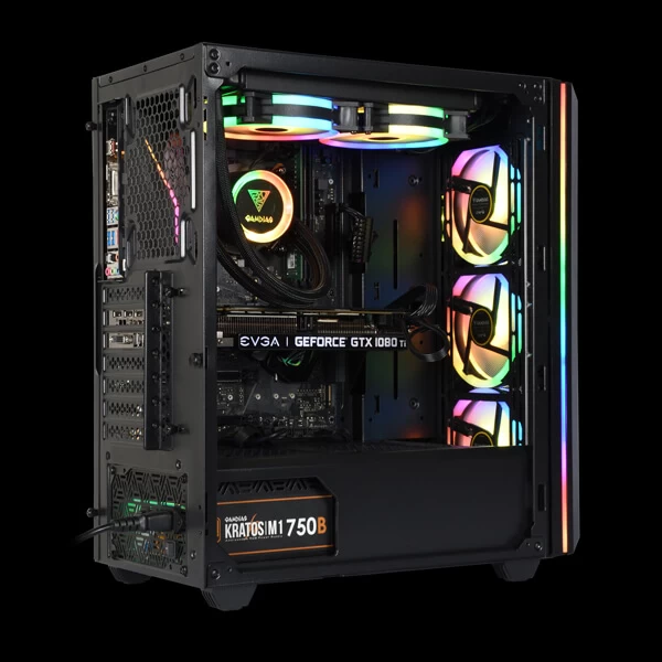 The dark and clean-cut asymmetrical mesh combined with three built-in 120mm trio rings ARGB fans and ARGB light strips provide high-airflow along with brilliant and polished aesthetics.