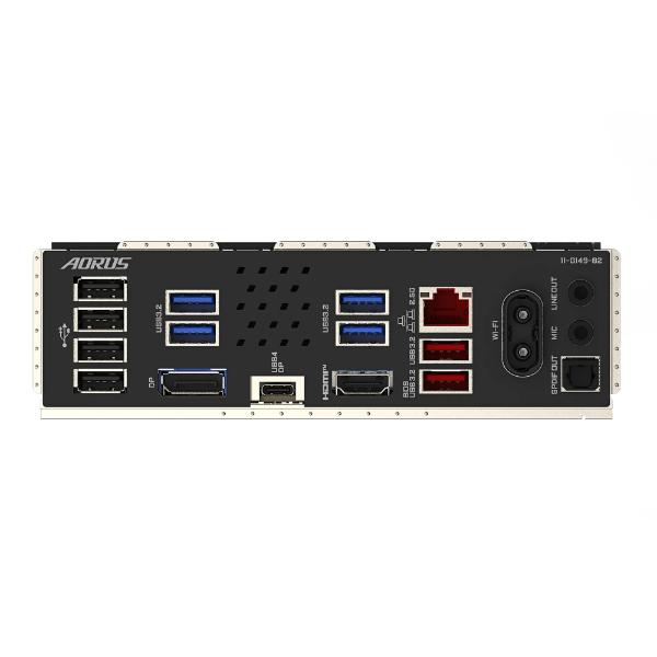 | Back Panel Connectors | 1 x HDMI port (Note) 1 x reset button 1 x power button 1 x Clear CMOS button 1 x Q-Flash Plus button 5 x USB 3.2 Gen 2 Type-A ports (red) 2 x USB Type-C® ports, with USB 3.2 Gen 2 support 2 x USB4® USB Type-C® ports (DisplayPort (Note)) 1 x RJ-45 port 3 x USB 3.2 Gen 1 ports 2 x antenna connectors (2T2R) 2 x audio jacks 1 x optical S/PDIF Out connector (Note) Actual support may vary by CPU. |