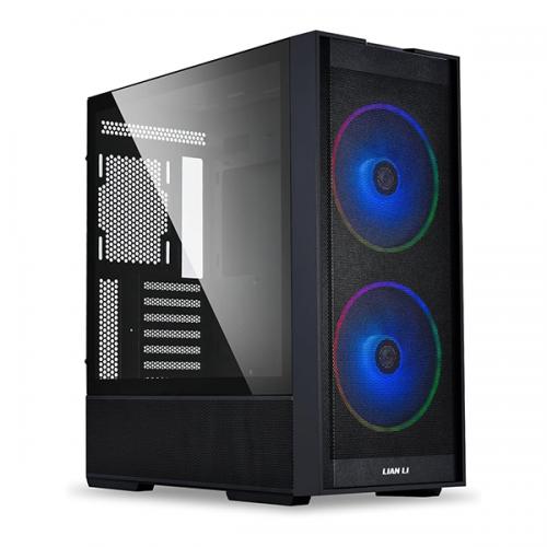 An aluminum housing cap with duo infinity mirror rings and a Lian Li logo at the center. (90° Rotatable)