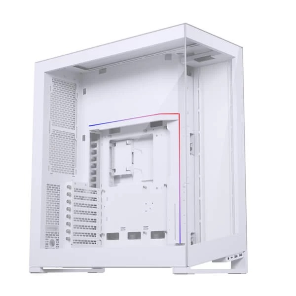 - Near-seamless tempered glass panels (front and side) with broad silk-printed frames for an unobstructed view.