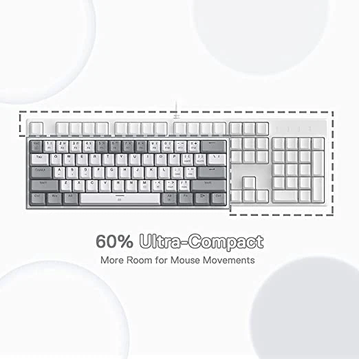 Redragon 60% keyboard in wired mode with fresh 2 colors mixed keycaps layout. Ultra-compact 61 keys with novel keycap color frees up precious desk space with vibrant elements.