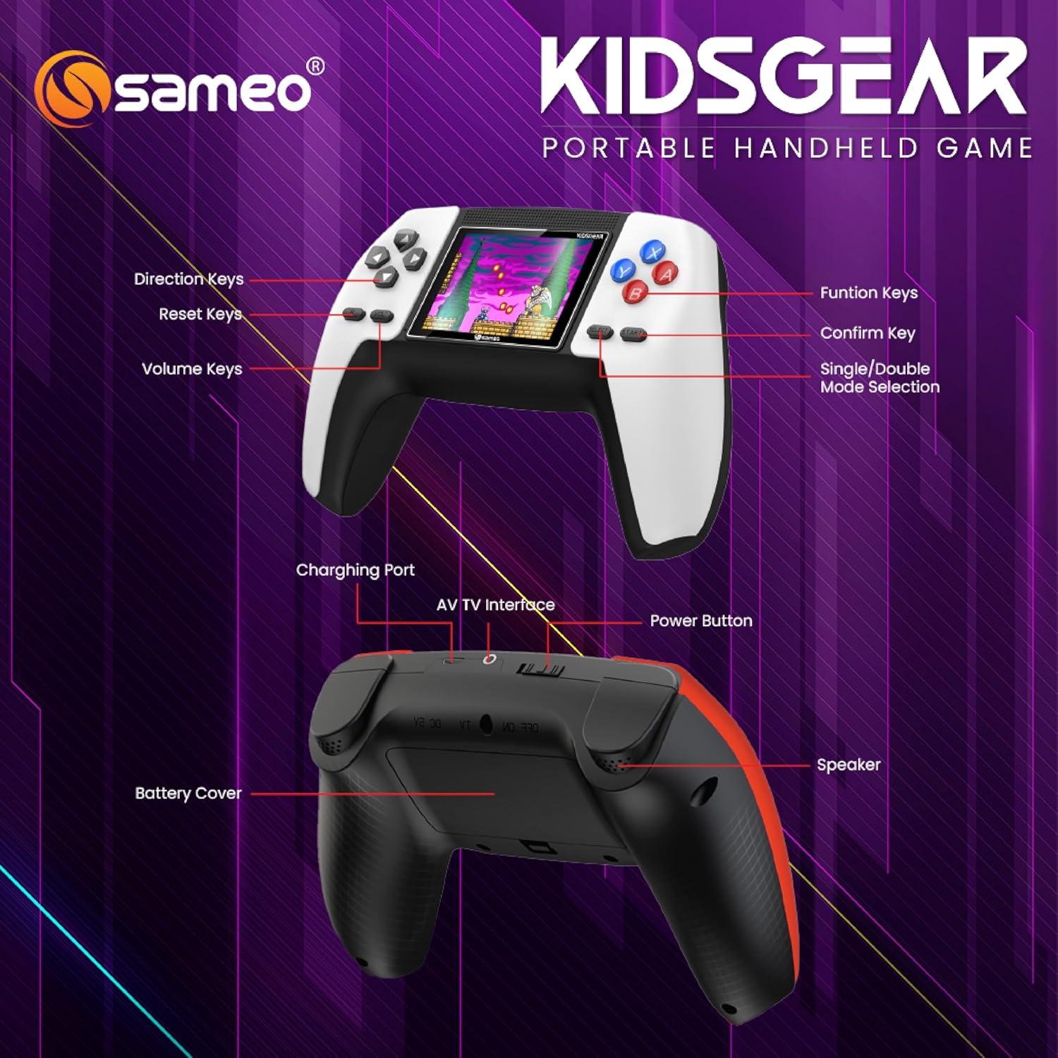 Introducing the Sameo Kids gear Controller Shaped Handheld Gaming Console, the perfect companion for gaming on the go. This sleek and ergonomic device combines cutting-edge technology with a familiar controller design for a seamless gaming experience. The high-resolution screen delivers vibrant, crisp graphics, making every game visually stunning. The ergonomic design ensures it fits comfortably in your hands, allowing for hours of uninterrupted play. With responsive buttons and precise joysticks, you’ll have superior control over your games. This versatile console features a variety of buttons, including Start, Select, and multifunctional action buttons, to suit any game genre. Its compact, lightweight build makes it ideal for travel or commuting, so you can take your games anywhere. Built with high-quality materials, the Kids gear is durable and designed to withstand daily use. Whether you’re a casual gamer or a dedicated enthusiast, the Kids gear Handheld Gaming Console is designed to elevate your gaming experience with comfort, style, and outstanding performance. Embrace the future of portable gaming with the Sameo Kids gear