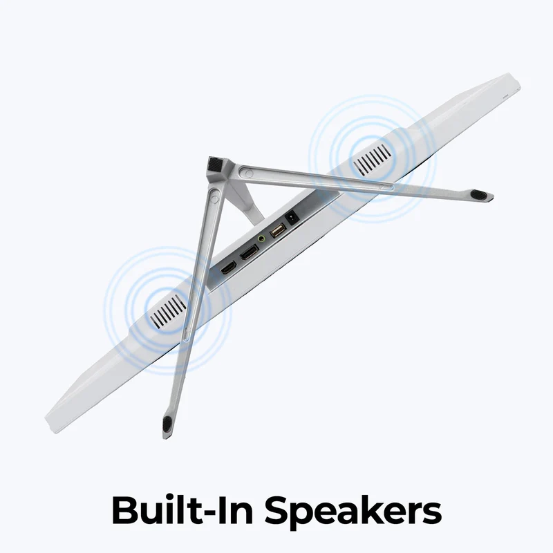 | The monitor has built-in speakers so that you can enjoy the power of visuals with the audio as well. The monitor also features a headphone jack and has an additional USB charging port. |